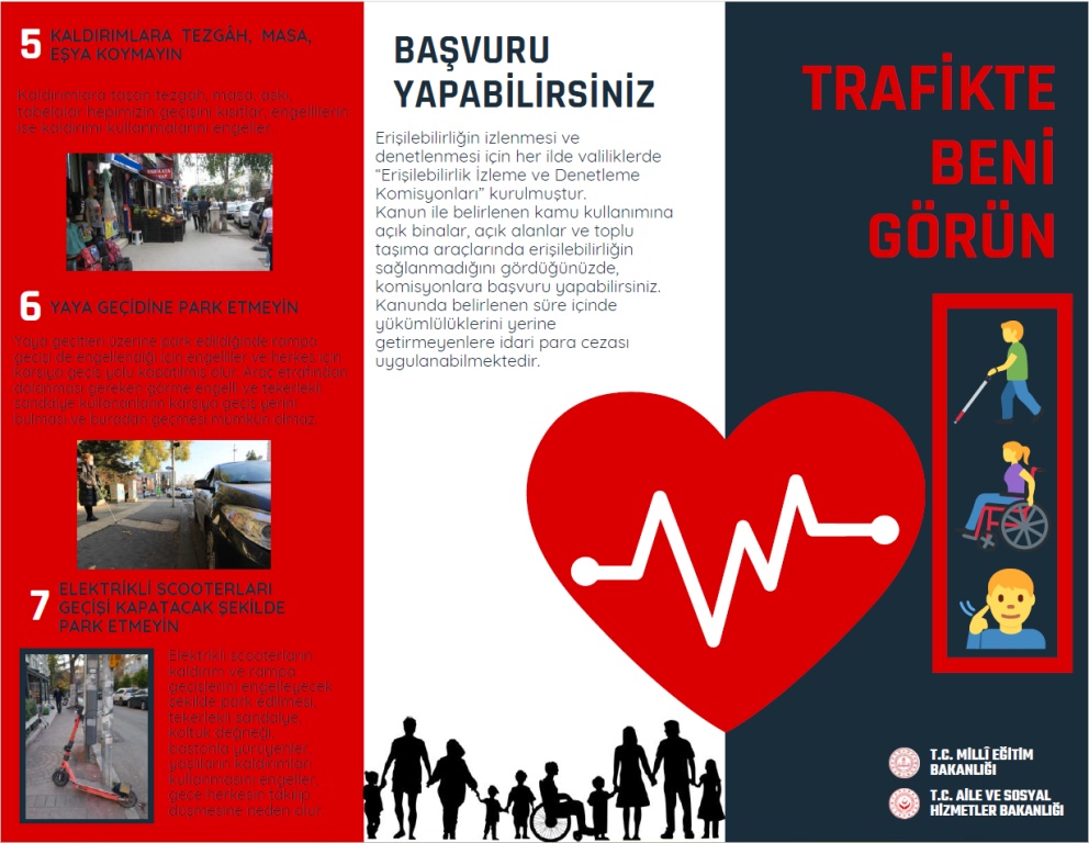 Her yıl 10-16 Mayıs tarihleri arasında kutlanan Engelliler Haftası, engelli bireylerin yaşadıkları zorluklara dikkat çekmek ve toplumda farkındalık oluşturmak için önemli fırsatlar sunuyor. “Karayolu Trafik Güvenliği Eylem Planı” kapsamında yapılan bu çalışma, 2021-2030 Karayolu Trafik Güvenliği Strateji Belgesi ve 2021-2023 Karayolu Trafik Güvenliği Eylem Planı'nın uygulanmasına ilişkin Cumhurbaşkanlığı Genelgesi 03.02.2021 tarihli Resmi Gazete'de yayımlanarak yürürlüğe girmiştir. Engelli ve yaşlı bireylerin trafik güvenliğinin sağlanması ve toplumun tüm kesimlerinde farkındalığın artması için bizde “TRAFİKTE BENİ GÖRÜN !” diyoruz.